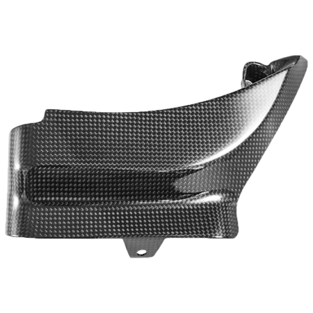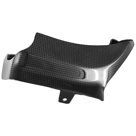 El material de carbono ligero mejora la circulación de aire y proporciona una apariencia más deportiva, mientras que al mismo tiempo protege la rueda trasera y el basculante.