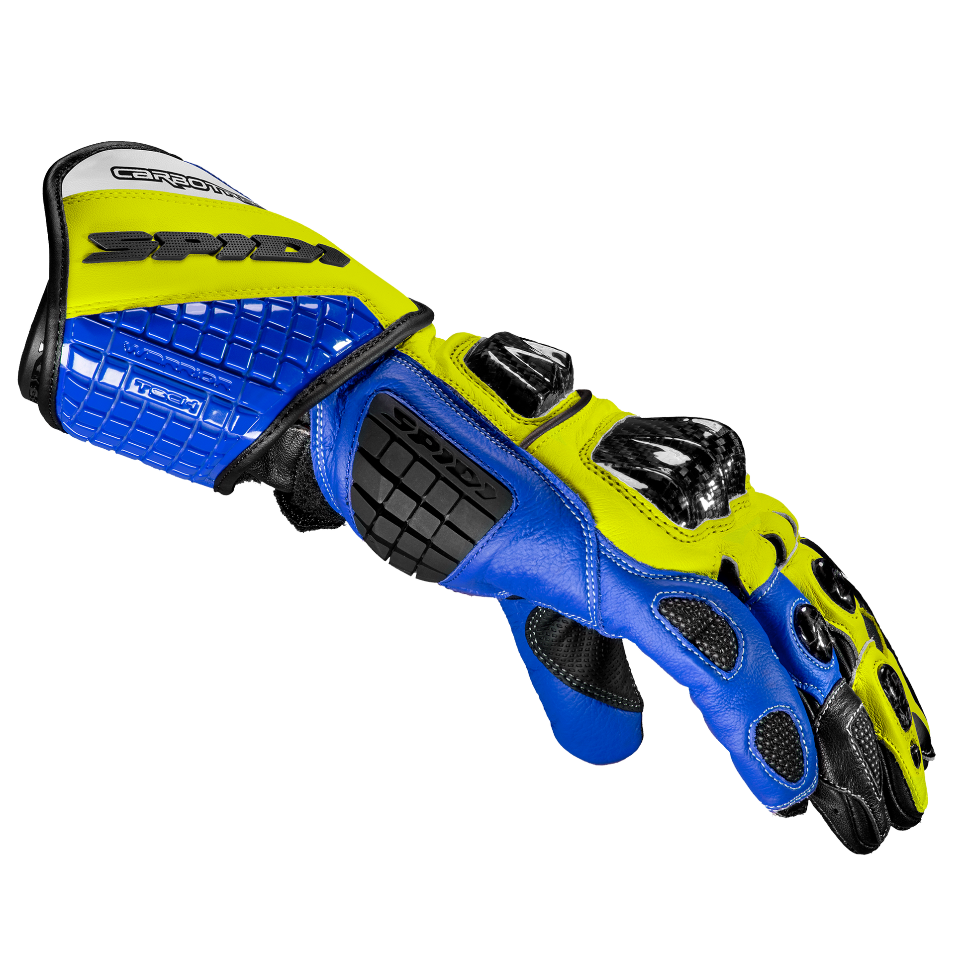 Guantes de cuero para moto Spidi Carbo Track Evo Racing | Hombre | Azul/Amarillo | A203477