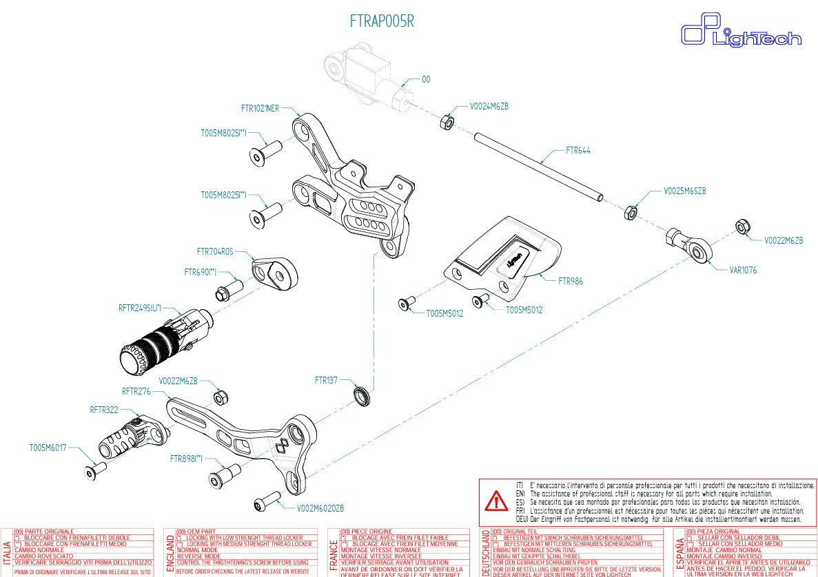 El sistema de estriberas LighTech R para la Aprilia RSV4 / RF / RR / 1100 Factory (años de fabricación 2017–2025) es la elección perfecta para pilotos exigentes en uso en carretera y en competición.