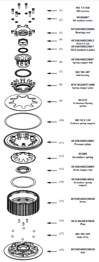 - Rampas de bolas patentadas para controlar la función antihopping, para un control preciso a altas revoluciones